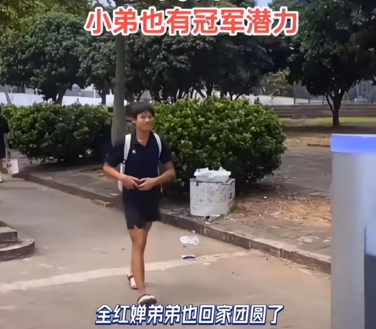 弟弟也有冠軍潛力噢,回家的時候是坐車抵達村口,不過他回家可沒有奧運冠軍姐姐全紅嬋那一種陣仗。