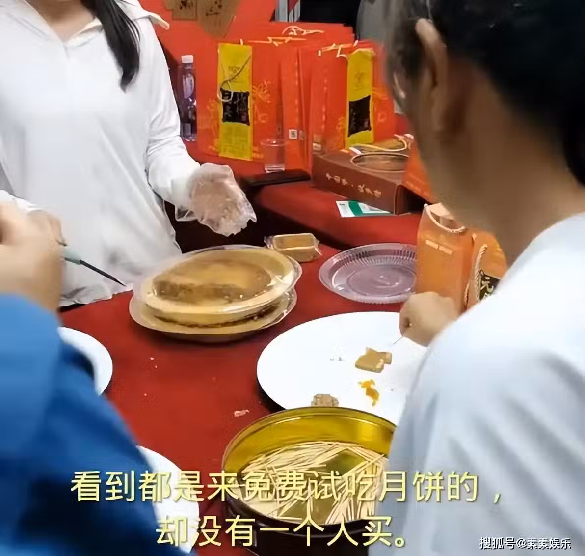 不光是全紅嬋家人一起慶祝,嬋寶家的樓下也有市民一起免費分享月餅。