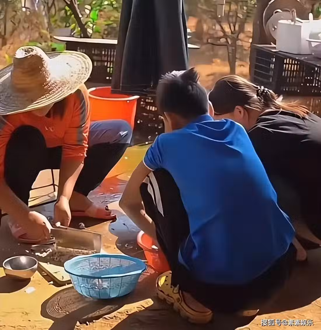 回家之後的他就換了全身衣服,和二姐全紅月還有媽媽一起切菜洗菜,非常勤勞的一個好孩子。
