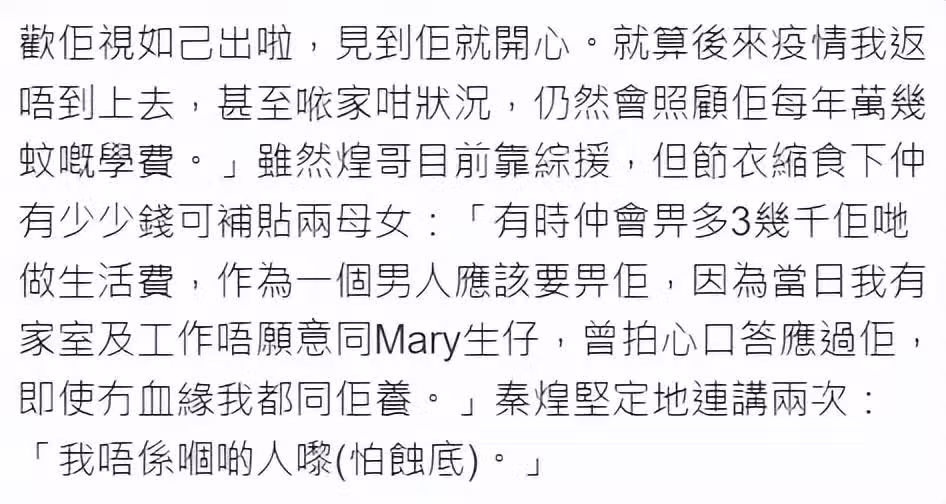 秦煌曝情人已回其丈夫身邊,不介意被拋棄,省吃儉用給她寄生活費