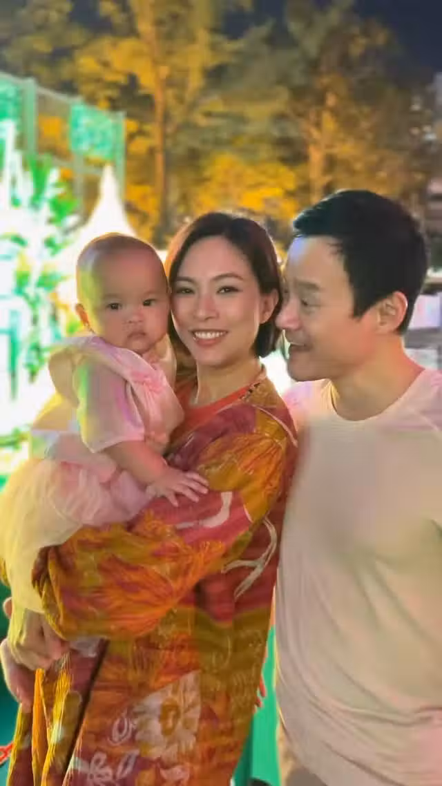 43歲香港女星帶10個月女兒賞花燈,腹部隆起孕味濃,曾計劃生4胎!