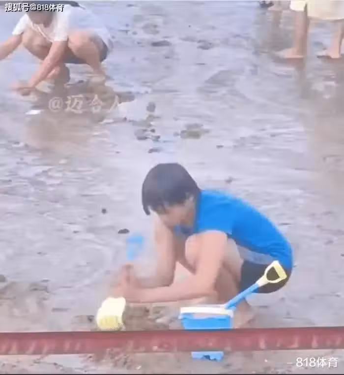 小孩姐!全紅嬋和發小金沙灣光腳挖蟶子,可愛小女孩跟著紅姐玩泥巴