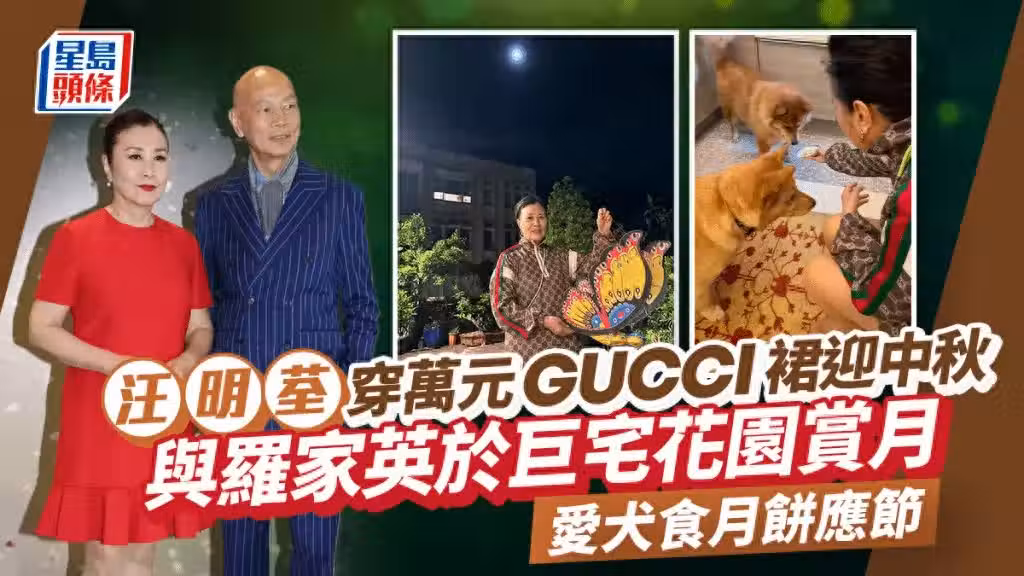 汪明荃夫婦穿奢牌賞月貴氣足,豪宅花園掛滿燈籠,愛犬有專屬月餅