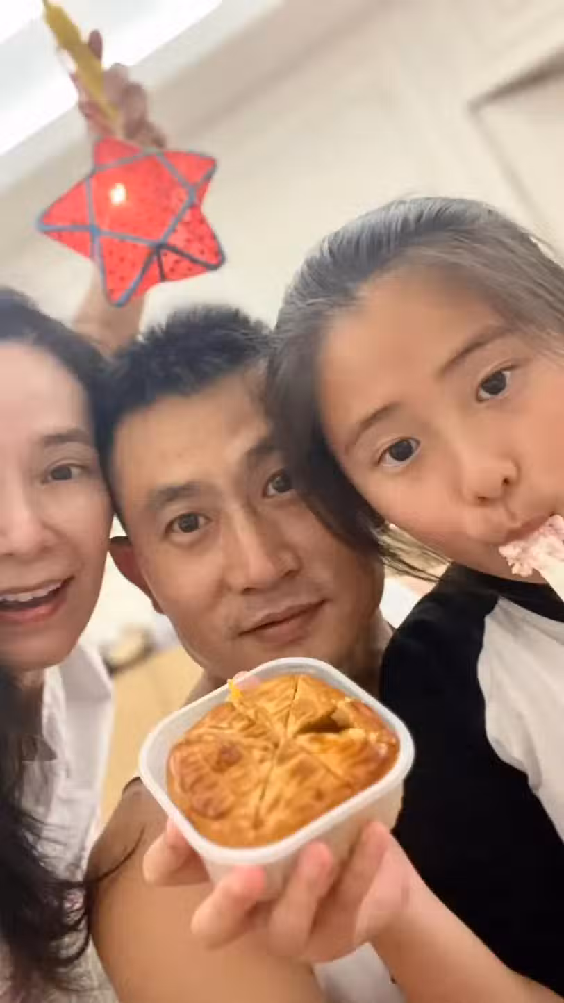 近日郭羨妮分享了一家三口的合照,並留言:「中秋節一家人又合體了,大家中秋節團團圓,生活愉快,身體健康!」照片中,一家人緊貼在一起望著鏡頭,又吃月餅又玩燈籠,其樂融融。