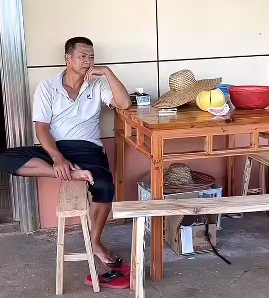 下一次見女兒,估計要等到過年期間了。全爸坐在果園的椅子上,神情落寞。