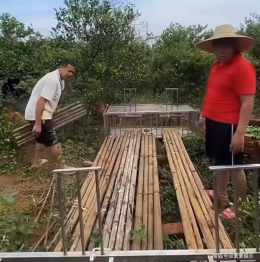 鏡頭之中的全爸和全媽正在為走地雞搭棚子,辛苦勞作的樸實農民,全爸全媽辛苦了。