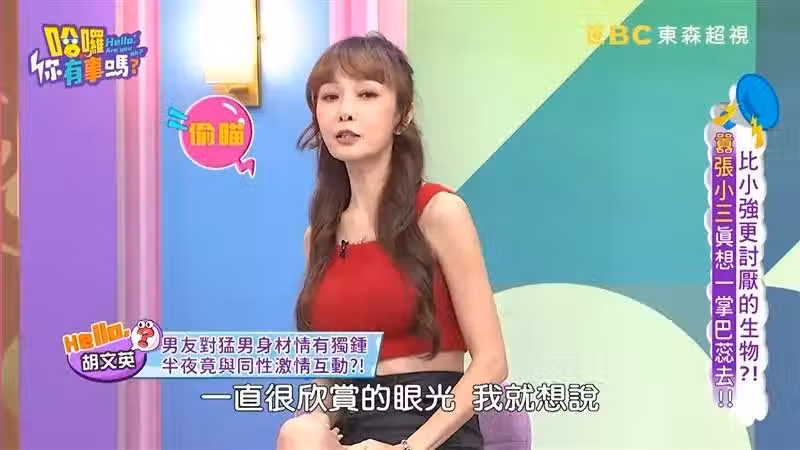 胡文英在《哈囉 你有事嗎?》透露,有一任男友都把自己練得很壯,但是常常發現男友走在路上,都會盯其他有健碩身材的男生,讓她第六感覺得不對勁,「我說為什麼你這樣看別人,他說沒有啊,我們同是健身之人,我欣賞同好是正常的」,加上後來又發現男友常會去朋友開的同志酒吧,「一個禮拜去兩三次,很久」。