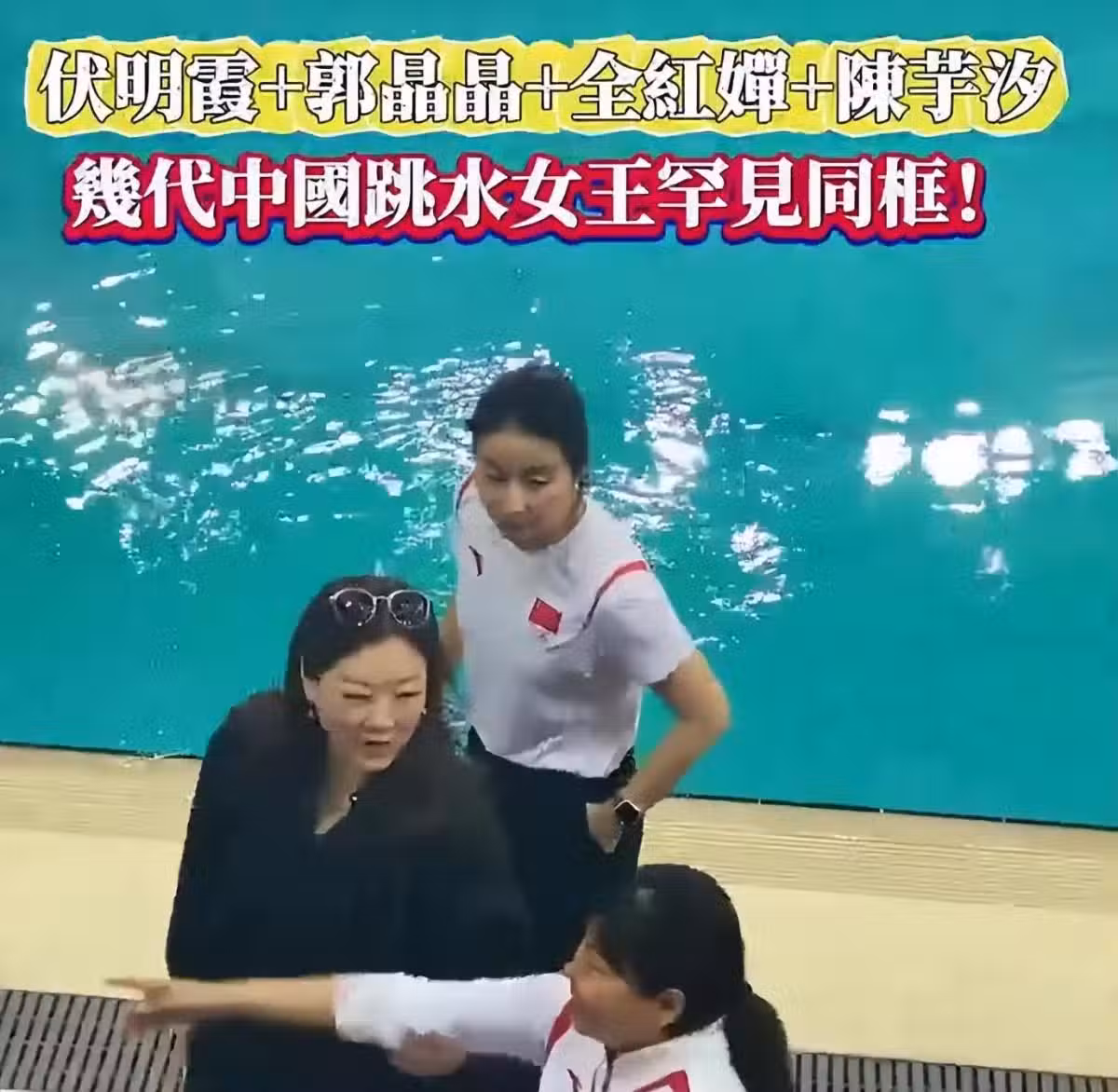 這2枚金牌,有一枚是郭晶晶和吳敏霞參與雙人跳水奪下,而郭晶晶前段時間還和師姐伏明霞一起迎接內地健兒訪港,他們和全紅嬋合照成為歷史性的一幕。
