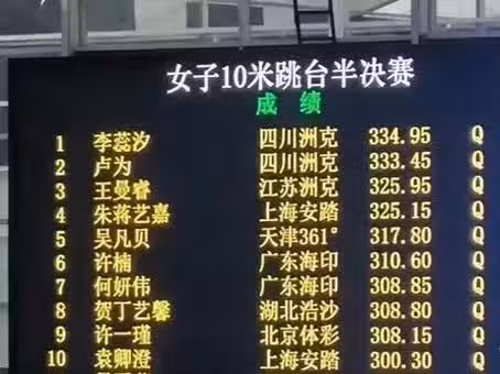 2024年全錦賽女子十米跳台比賽目前正在進行之中,本次比賽吸引了很多粉絲的關注,全紅嬋和陳芋汐雙雙缺席,讓大家非常關注到底誰能夠拿到冠軍,沒想到結束了半決賽的比賽之後,大家發現半決賽排在第一的選手居然只跳出了330多分,成績甚至比全紅嬋巔峰時期少130分。第一名比全紅嬋少130分!女子10米跳台斷層嚴重,網友:未來壓力大。