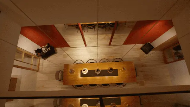 進門之後是紅色風格的前廳,紅色背景,紅色鋼琴是定製的,還有滿滿的獎盃。