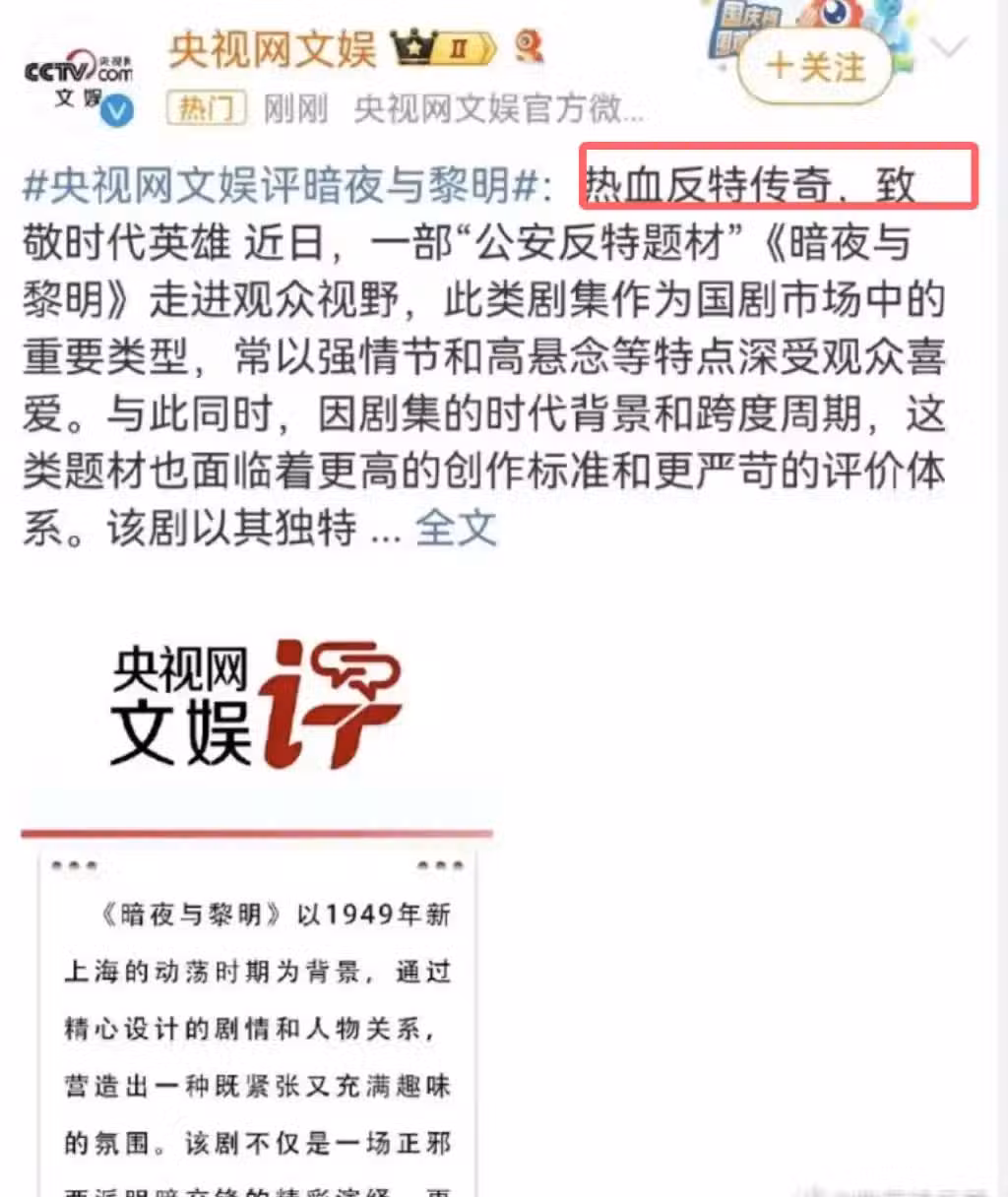 《暗夜與黎明》收視破3!哪幾位是「功臣」,看看央視的點評就知道了