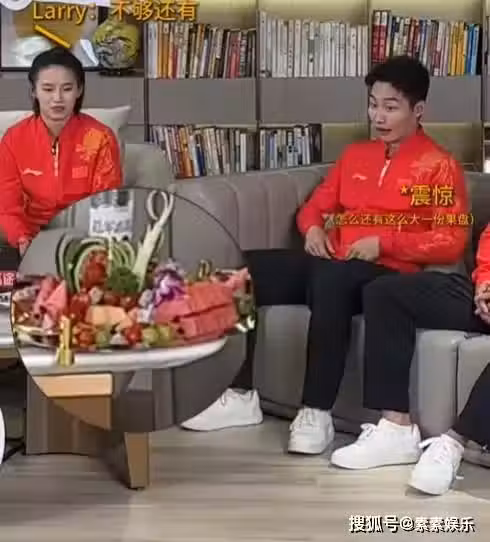 整個現場,工作人員看到嬋寶那麼喜歡吃,於是中途又端上來一個水果拼盤,超級有趣的畫面。