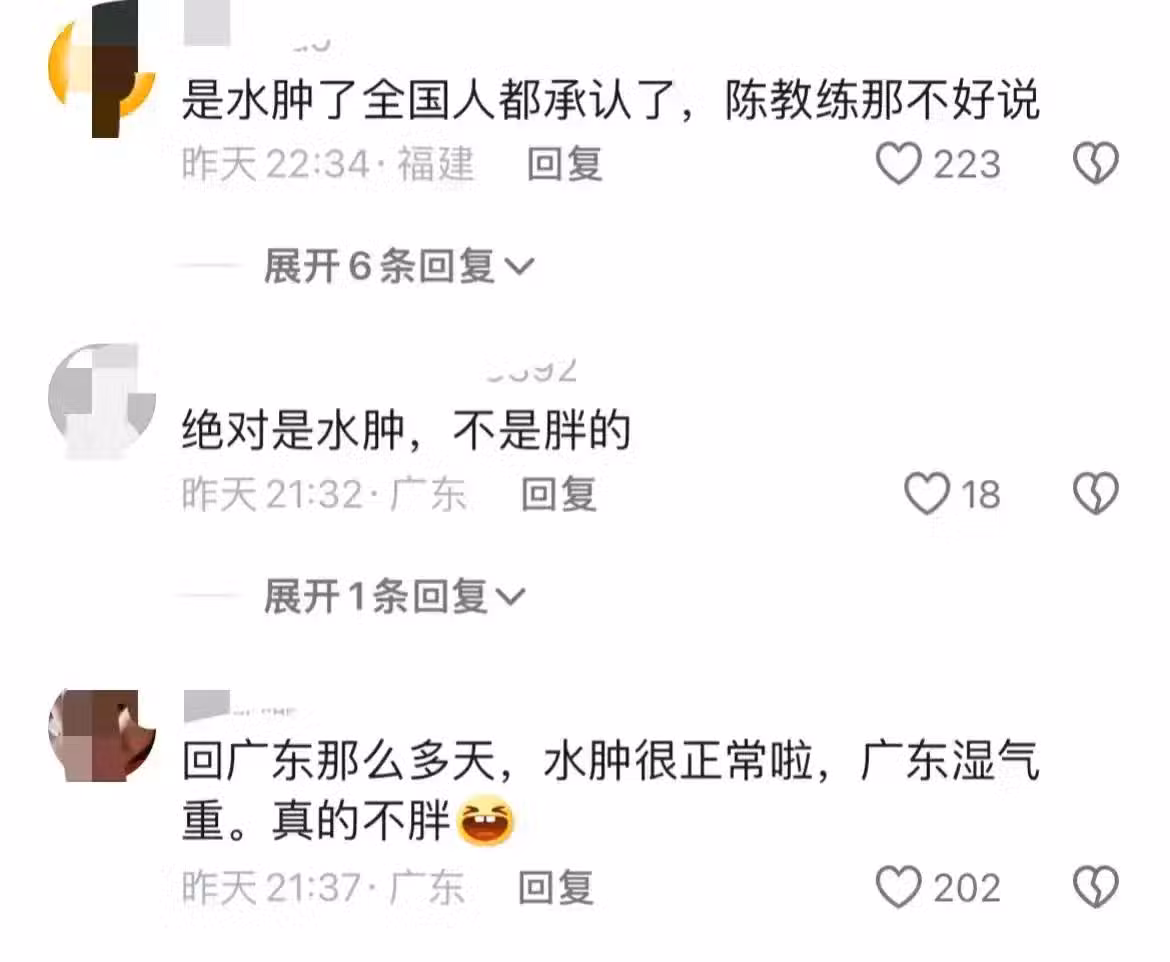 「水腫了」!全紅蟬說自己只是有點水腫,沒有胖,,我卻笑死在有陳若琳的評論區