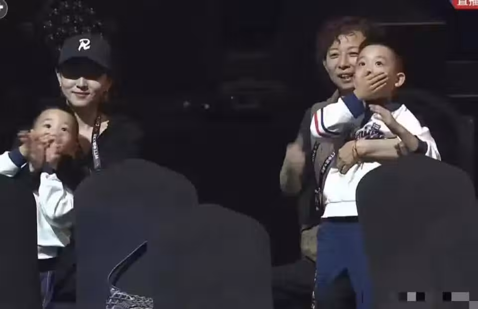 兩個兒子觀看馬龍比賽,可能發出一些驚呼,結果媽媽把他們的嘴巴都捂住,擔心影響到其他人,說明父母對孩子的教育是正確的,並不是放任不管,任其吵鬧喧譁。