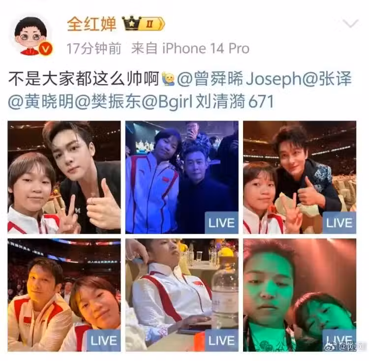 全紅嬋發了好多合照!備受娛樂圈明星尊崇:張譯蹲下 黃曉明彎腰