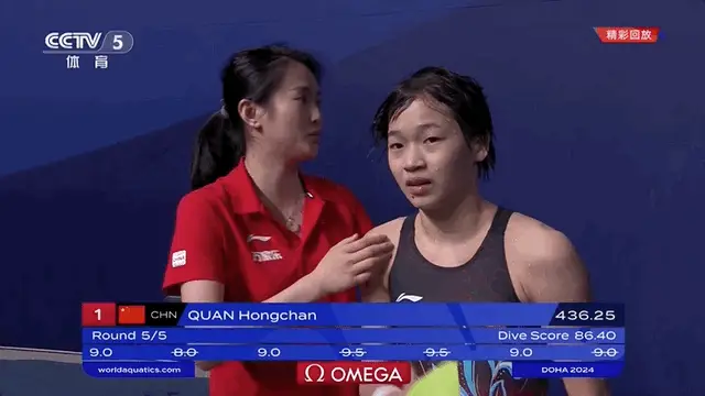 賽後的採訪,全紅嬋說比賽過程有一點緊張,但後面及時做了調整,還是專注於自己。