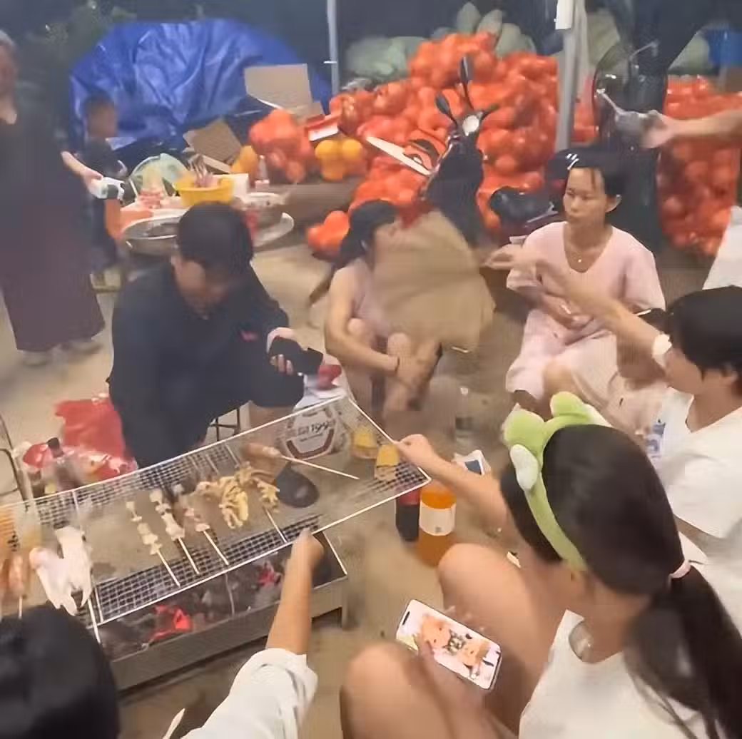 全紅嬋哥哥做了各種海鮮,滿滿一大桌。沒辦法,湛江就是海鮮多。全紅嬋家的習慣是節日還要置辦燒烤。大家圍在燒烤爐邊上,一邊烤一邊吃,並且聊聊天,邊上還放了不少飲料。