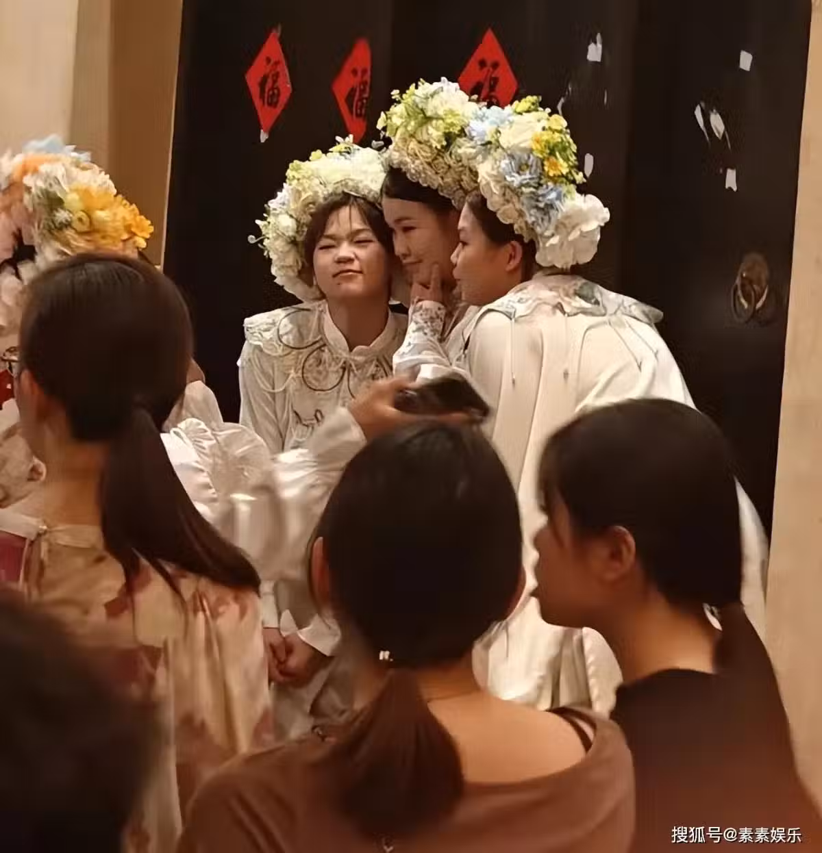在她們合影的期間,粉絲與網友認出了是奧運冠軍全紅嬋,還有親友團一行人。於是大家都紛紛圍住嬋寶,與他們一起合影。