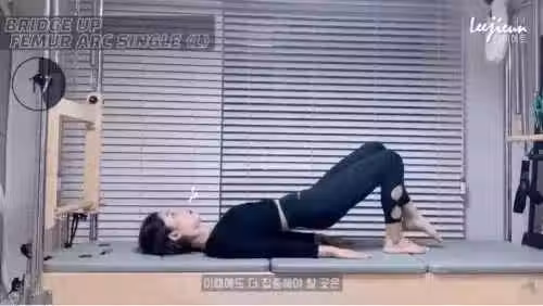 STEP2:平躺並單腿屈膝腰部抬起,單腿上下擺動,幫助腿部多餘脂肪消耗並且方便塑形。