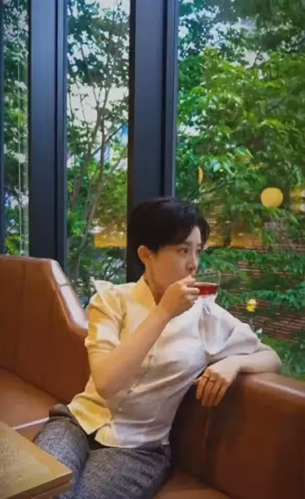 近日不惑之年的她坐在家中豪宅悠閒喝茶。