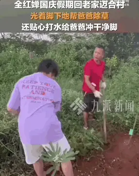 全紅嬋回家干農活曝光 ,光腳下地揮鋤頭 還打水給爸爸沖腳