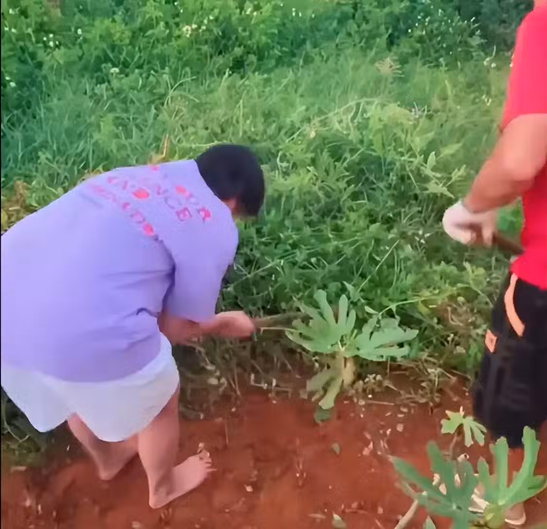 全紅嬋父母承包了很大一片果園和田地,種植各種水果還有地瓜、花生等農作物。這次全紅嬋父親全文茂帶著大家除草。全紅嬋拿了鋤頭除草,姿勢很標準。