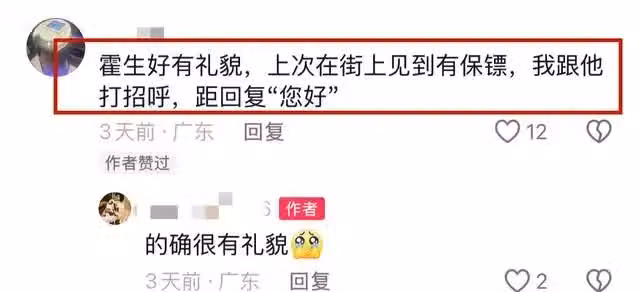 「霍生好有禮貌,上次在街上見到有保鏢,我跟他打招呼,他回覆你好。」