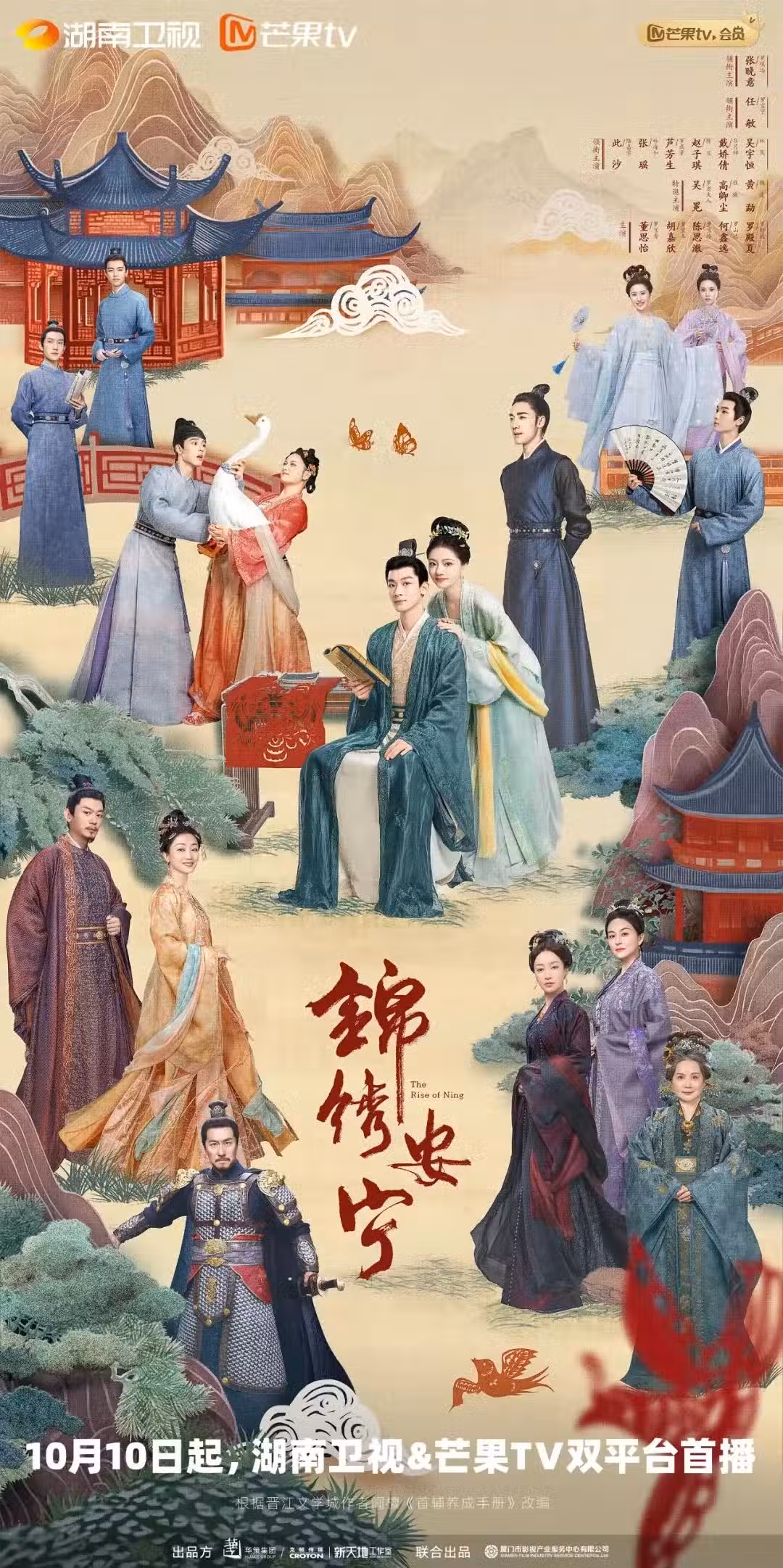 府邸深深乾坤藏,甜爽逗樂迎客來。由張晚意、任敏、此沙、吳宇恆、董思怡主演的電視劇《錦繡安寧》定檔,將從10月10日起,在湖南衛視、芒果TV雙平台首播。逢周一至周四22:00在湖南衛視播出,每日18:00在芒果TV會員搶先看。