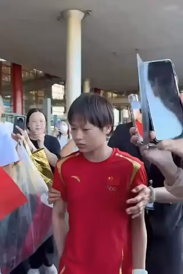 明顯差別,奧運回國, 陳芋汐由周繼紅保護,宛如慈母,全紅嬋卻被工作人員拉扯
