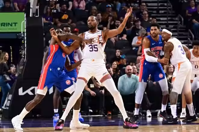 第三場比賽更尷尬,繼續打活塞,布克休戰,杜蘭特和比爾帶隊,兩人在場平均輸18分,一度被活塞拉開28分分差,還是依靠替補的奧克吉、波爾、吉萊斯皮幾個人給追回來一些,最終18分慘敗。當然,季前賽結果肯定不重要,但有三個問題,太陽一整個夏天都沒解決。第一、新帥布登霍爾澤上任,直接推翻了前任沃格爾的防守延誤和錯位戰術,選擇讓中鋒沉退守在籃下蹲坑,最累的是誰?顯然是杜蘭特,因為他打四號位,要承擔很大一部分的對抗和繞掩護追人工作,杜蘭特在36歲的年紀,能堅持多久?