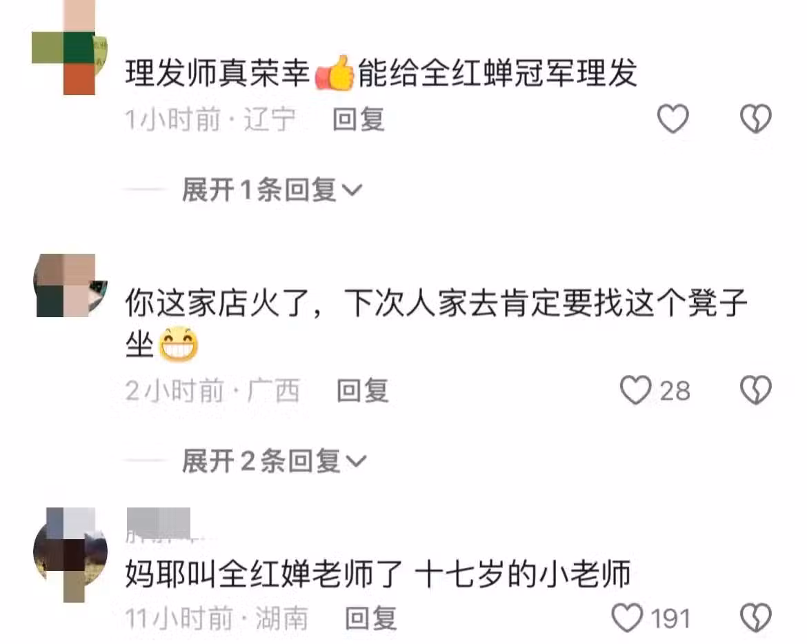 怎麼那麼黃!給全紅蟬理髮的托尼老師,隔著螢幕都感覺到他緊張,,網友評論笑死