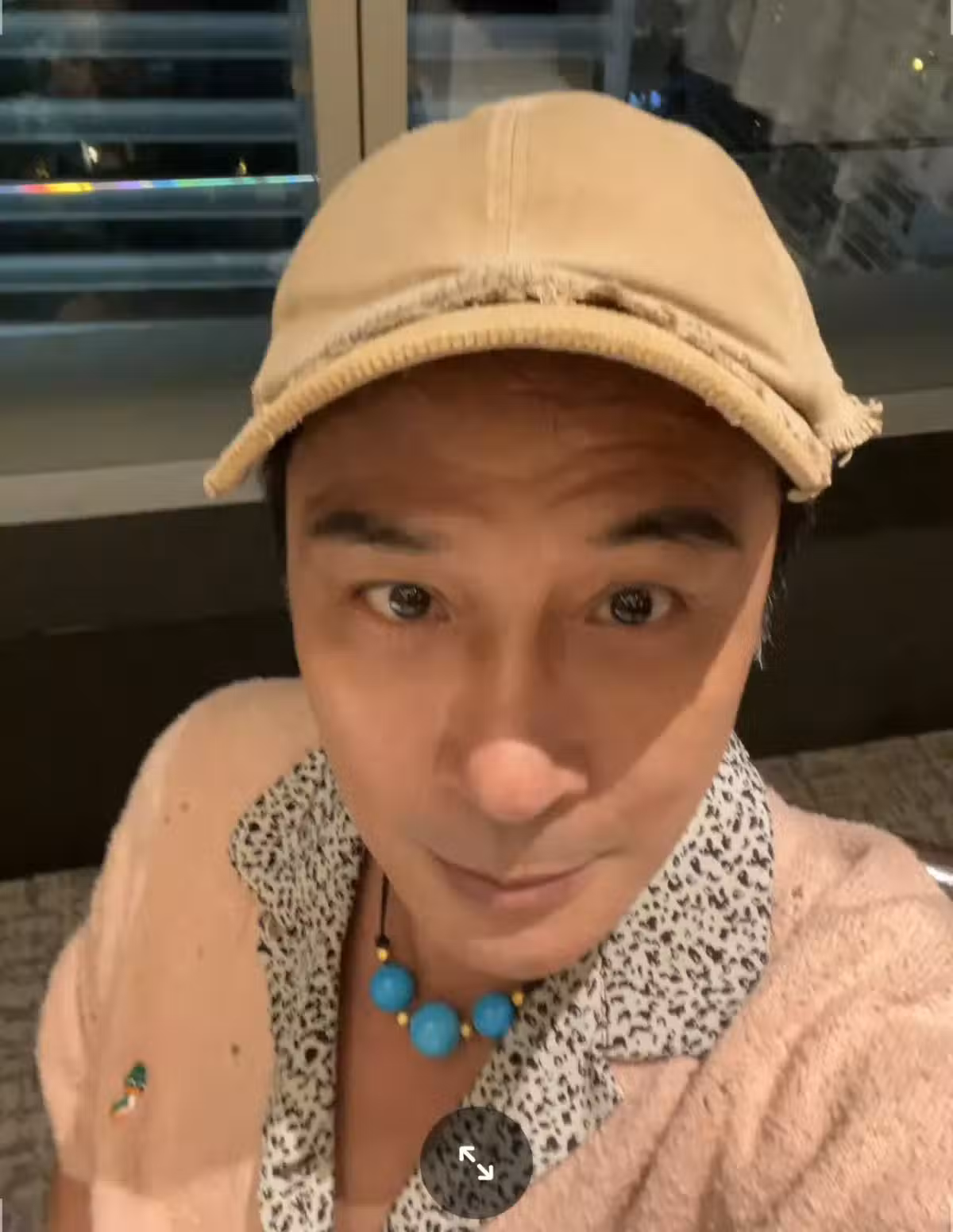 吳鎮宇首先曬出了一張自拍視角,穿著粉嫩的毛衣外套,戴著藍色的珠子項鍊,頭髮鴨舌帽,看起來很復古風,很隨性,很潮。
