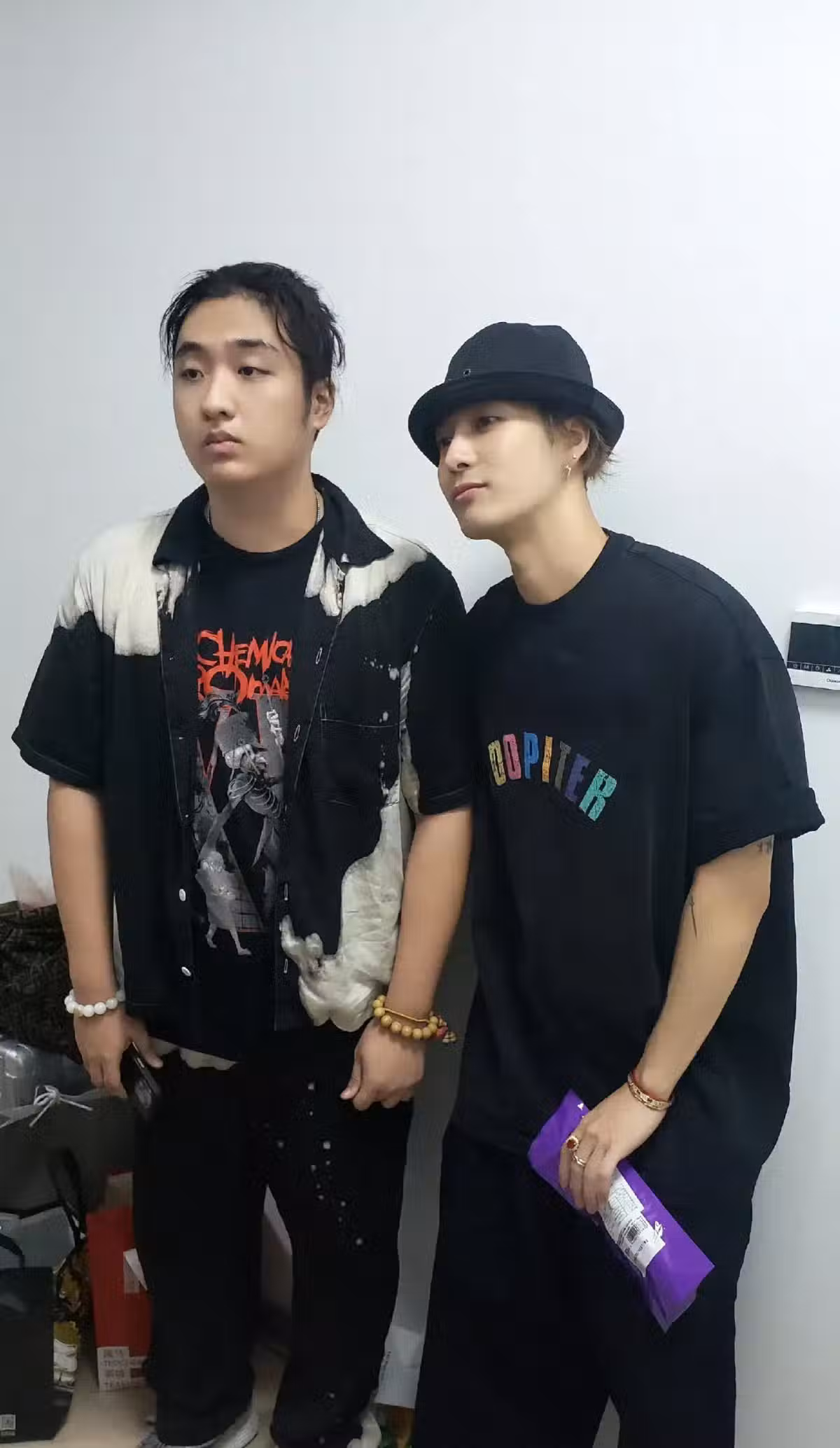 費曼看起來比王嘉爾還要「老成」一點,儘管王嘉爾微微彎腰,但費曼的身高優勢還是很明顯,看起來比王嘉爾還要高半頭。