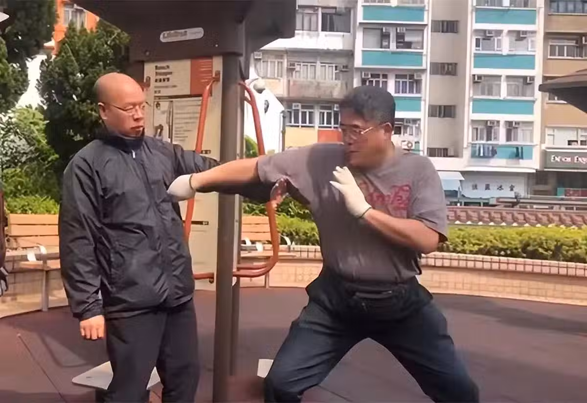 曝光的近照中,李中寧現身公園,跟一旁的人練拳。只見他穿著深色T恤,下身搭配牛仔褲,腰上別著包包,打扮跟一般的路人無異,毫無星味。