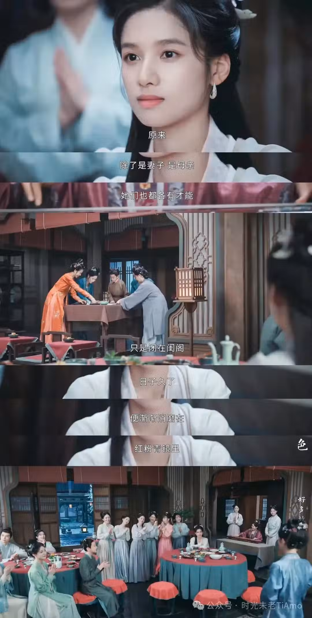 原來,四夫人有好嗓音,二夫人會雙手同時寫字,大夫人會撫琴,每個人都曾是美好的自己,只不過困在後院久了,就以為天只有那麼四方一塊了。 祖母那一句,「我也不是生來就在閨中!」擲地有聲