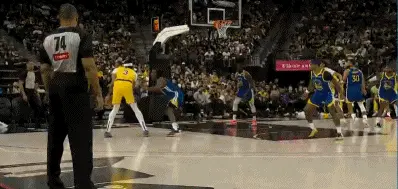 次節,上來雙方打鐵,盧尼不補籃打進第一球,勇士33-28湖人,跟著八村塁翻身跳投2分打進33-30,這邊海斯雙手灌籃2分回敬36-32,暫停,回來沃特斯三分投中39-32,跟著李凱爾雙手扣籃打中2分41-32,這邊里夫斯三分球還以顏色41-35,跟著穆迪底角三分回敬44-35,湖人被打停,勇士有扣分43-35,跟著克內克特接球三分打進45-38,濃眉轉身拋投打進,加罰也中45-41,濃眉干擾球,跟著庫里上籃打進2分49-41。TJD補籃打進2分51-41,濃眉雙手補扣打進2分,跟著詹姆斯假投真上打進2分53-45,TJD打板打板2分命中53-47,里夫斯造犯規兩罰全中53-49,跟著庫里扣籃2分55-49,詹姆斯拉杆上籃兩分打進55-51,庫里三分還以顏色58-51,半場結束勇士隊領先7分。
