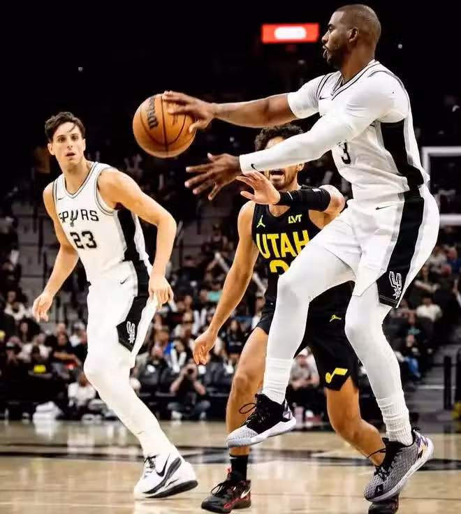 事實上確實如此,保羅來到馬刺出場的3場季前賽中,取得了2勝1負的戰績,3場比賽共送出了16助攻,馬刺場上明顯打得更加合理了,文班在他的身邊也打得如魚得水。