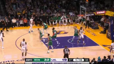 濃眉準備背打霍福德,看到八村塁空切後準確將球傳了過去,前者完成非常漂亮的接投中距離。