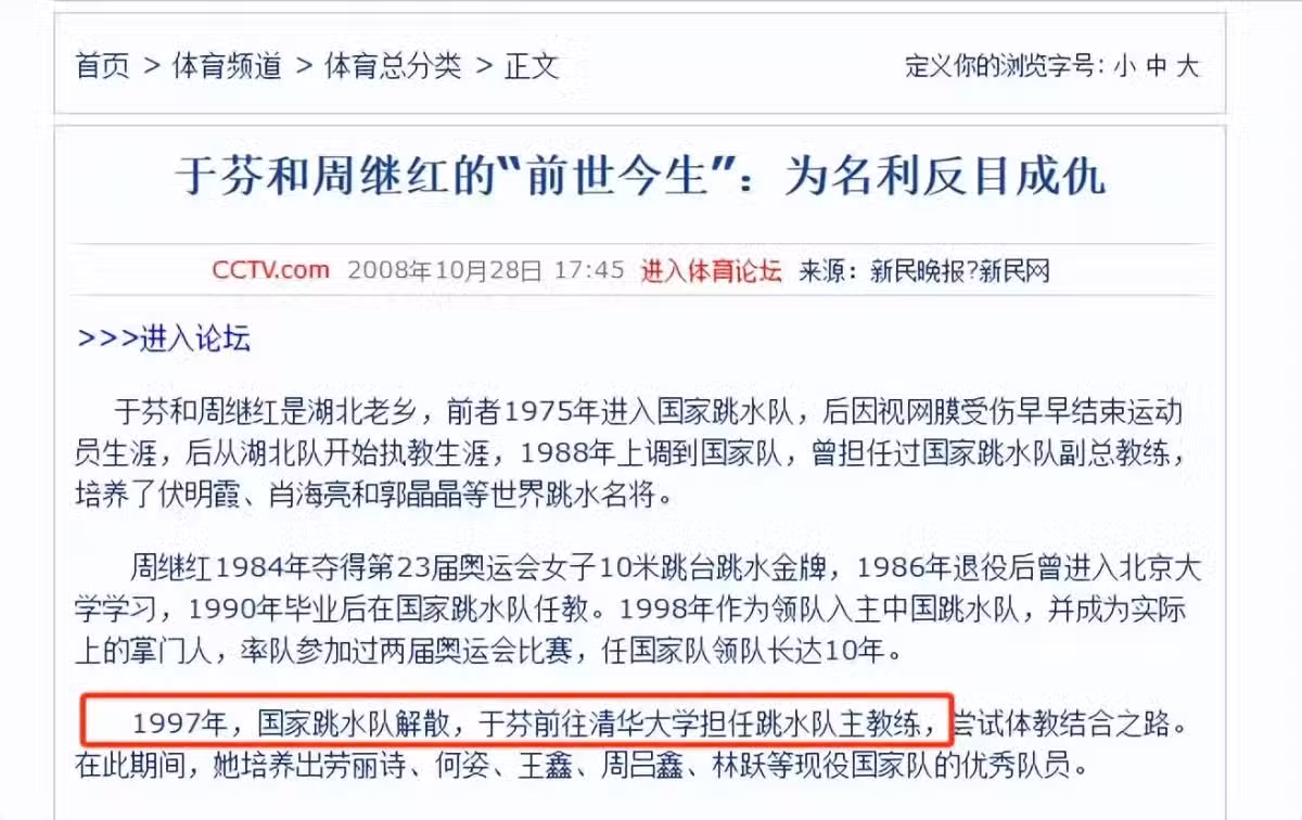 這可以看出來,伏明霞是一直追隨於芬的,當國家隊組建時,國家隊邀請周繼紅執教,周繼紅為了壯大隊伍,特意邀請清華跳水隊的有些成員加入國家隊。