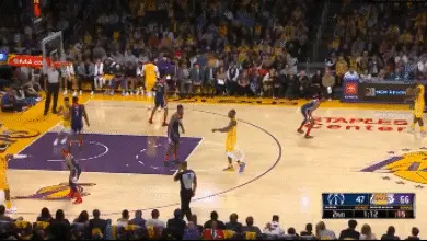 丹尼·格林無球掩護,然後和波普一起反跑,從而為霍華德空切籃下提供空間,最終接到詹姆斯傳球完成空接。