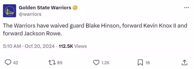 勇士連裁3人,大名單14+3出爐!9號秀再遭放棄 科爾面臨甜蜜煩惱