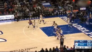 接到隆多的傳球,米羅蒂奇先是晃開霍福德然後持球突破很好吸引了恩比德防守重心,從而為濃眉順下攻堅提供了足夠的空間。