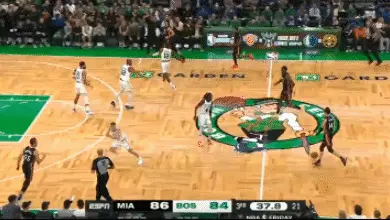 變向後希羅一直「推」著霍勒迪前行,最終完成上籃。單看這回合,希羅展現出不錯的運球(非慣用手)和對抗能力。
