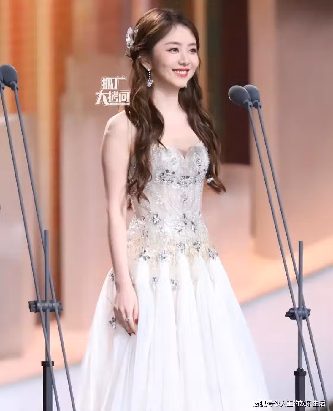 此次參加金鷹節頒獎典禮,譚松韻同樣身穿白色禮服,四肢纖細,鎖骨精緻小巧,抹胸的設計勾勒出她飽滿的事業曲線。