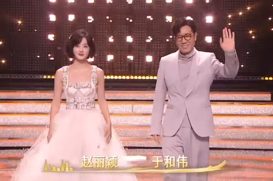 兩人都是最佳主角的提名,也是今晚外界猜測最大的得獎者之二,相比較趙麗穎的靈動活潑,一身灰色西裝造型的于和偉則顯得更加成熟穩重,兩人的登台也算的上是今晚金鷹獎最養眼的組合之一了。