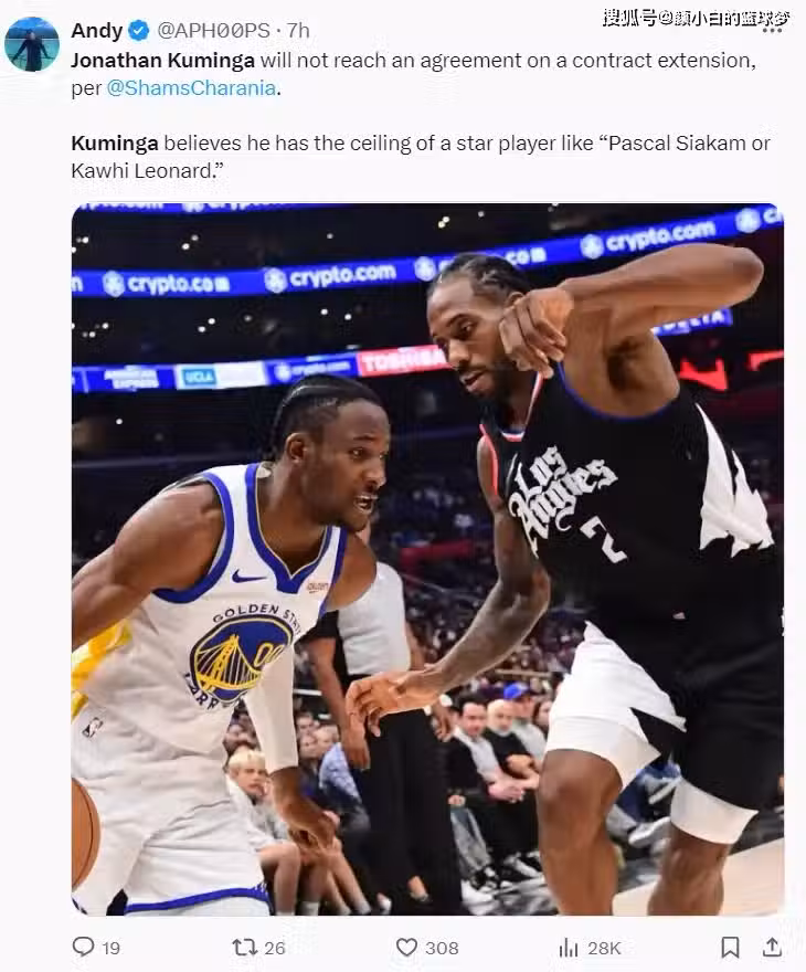 庫明加續約失敗細節:稱自己像西卡小卡索要頂薪 勇士僅給均薪3000萬