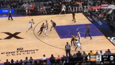 接到索漢傳球後文班亞馬順勢擺脫杜蘭特,隨後持球突破迎著太陽防守球員完成一記非常精彩的暴扣。