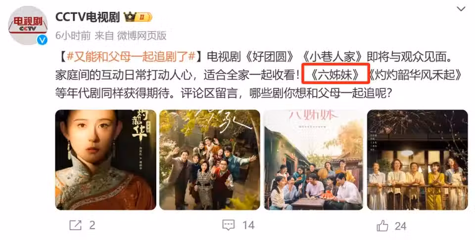 央視官宣‼️40集年代大劇《六姊妹》來襲‼️陣容雄厚,全員老戲骨,這部劇熬夜也要追!