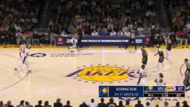 幾乎沒有靠隊友的一點幫助,丁威迪一人就將步行者的防線衝散。值得一提的是,詹姆斯也在場——此時的進攻定位是底角的接投。顯然,如剛才所說丁威迪分擔了詹姆斯的攻堅壓力。
