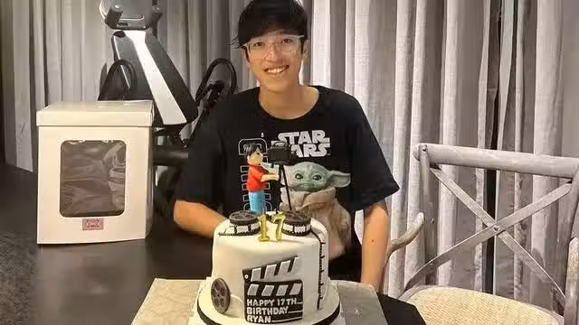 李立仁面前的生日蛋糕看起來還是非常獨特的,上面畫滿了圖案,除了有電影菲林和拍板外,還有一個手持攝影機的人,不知道這是否暗示蛋糕上的人就是李立仁本人呢?